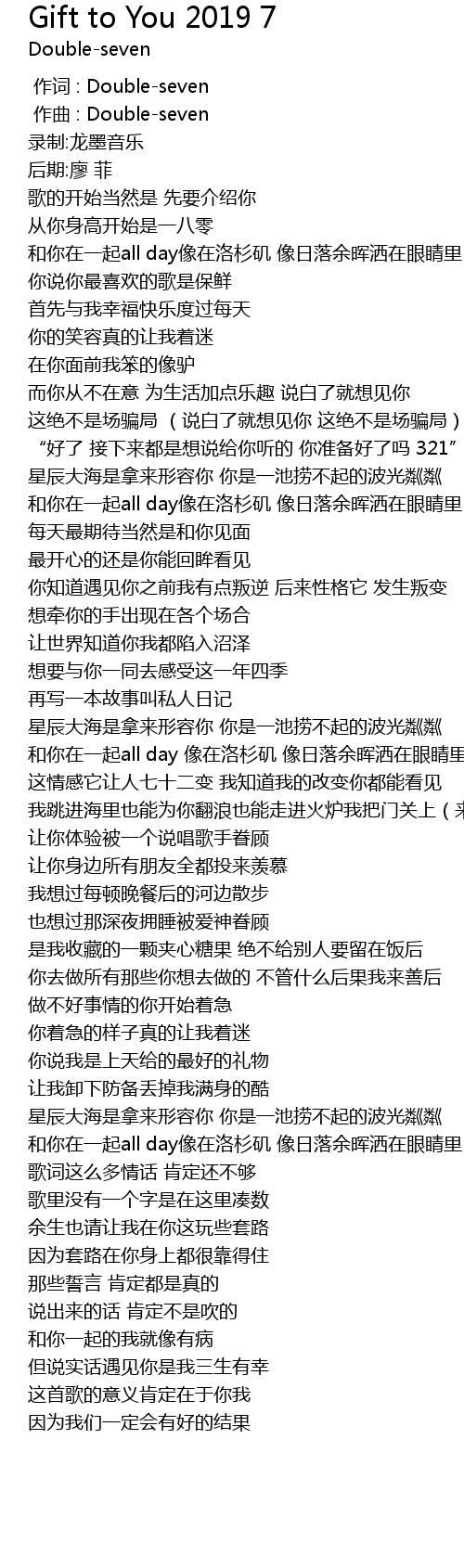 | [00:01.000] | zuò qǔ : Doubleseven |