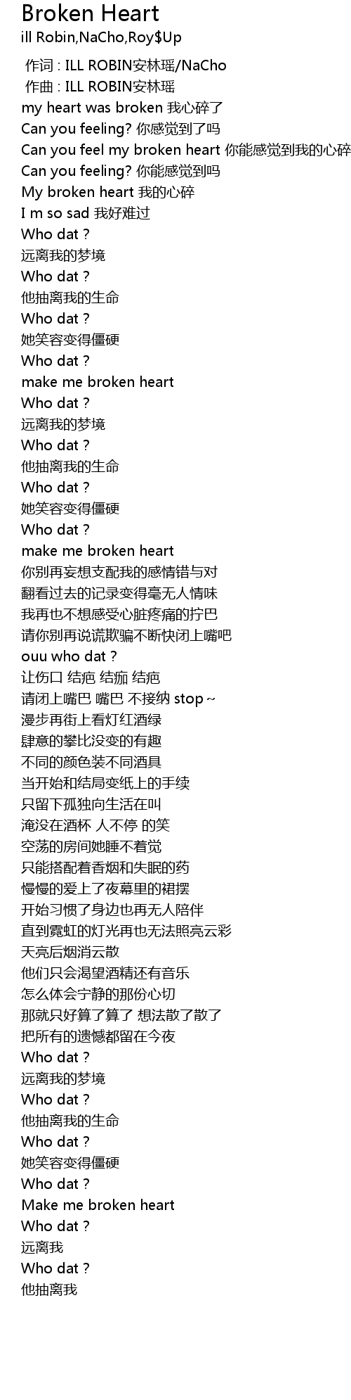 [00:15.277] Can you feel my broken heart nǐ néng gǎn jué dào wǒ de xīn suì ma