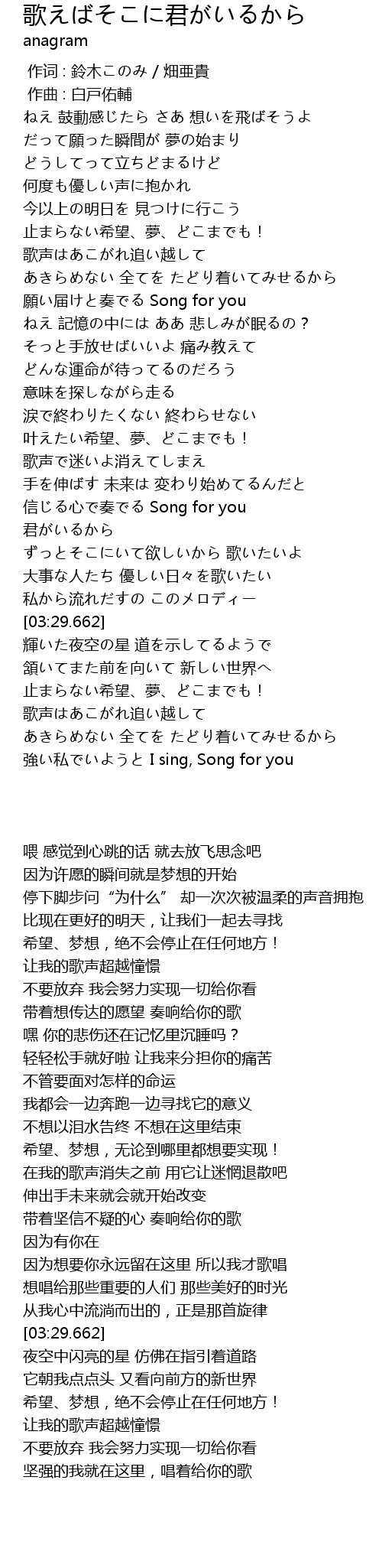 | [04:19.408] | 強い私でいようと I sing, Song for you |