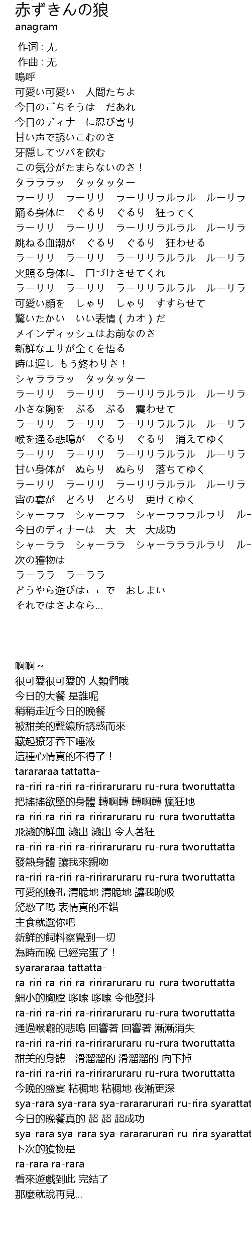 | Song | 赤ずきんの狼 |