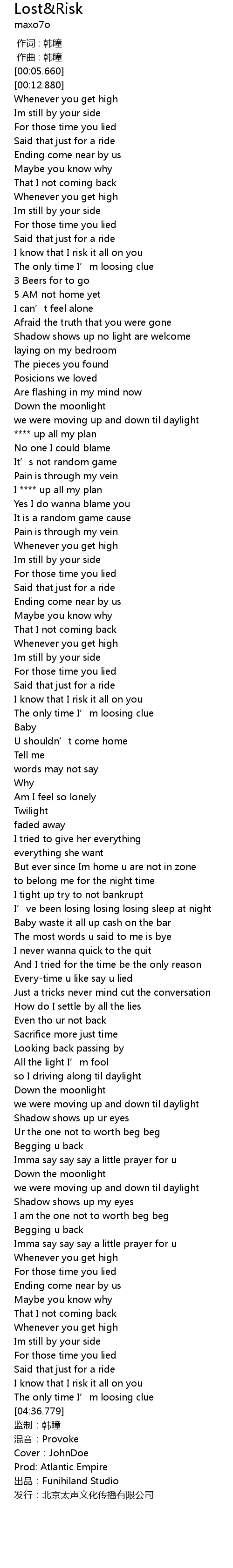 | [04:45.779] | 发行:北京太声文化传播有限公司 |
