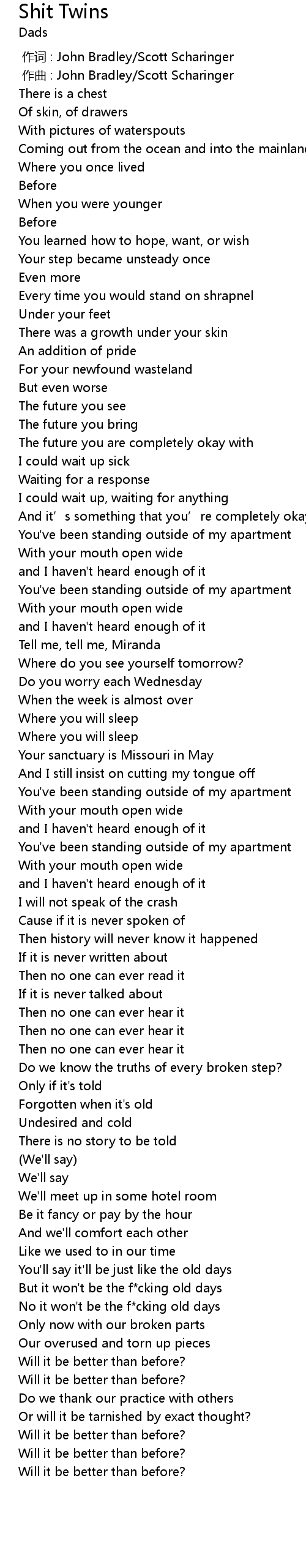 | [00:00.000] | zuò cí : John Bradley Scott Scharinger |