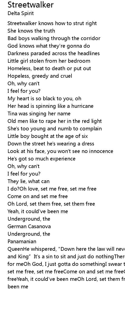 | QueenHe whispered, " Down here the law will never find youDown here I am your God and King" It' s a sin to sit and just do nothingThere' s a special place in hell for meOh God, I just gotta do somethingI swear to God this is happeningOh love, set me free, set me freeCome on and set me freeOh Lord, set them free, set them freeYeah, it could' ve been meOh Lord, set them free, set them freeIt could have been me |