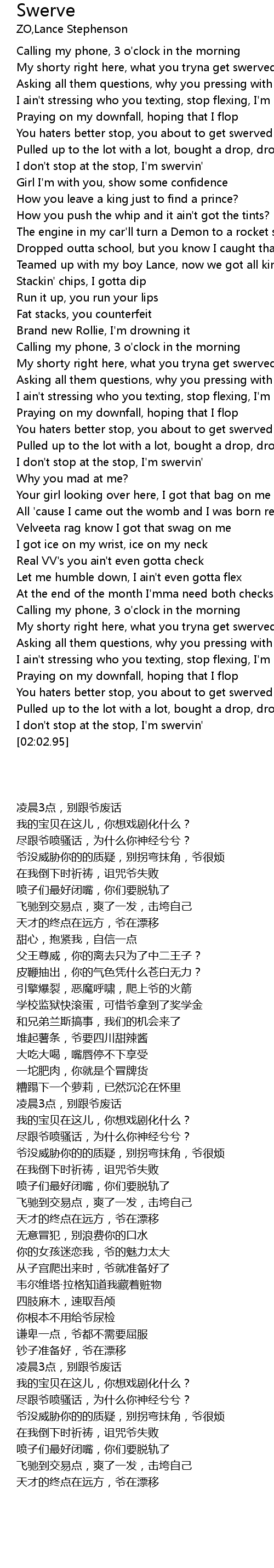 | [01:33.61] | I ain't stressing who you texting, stop flexing, I'm swervin' |