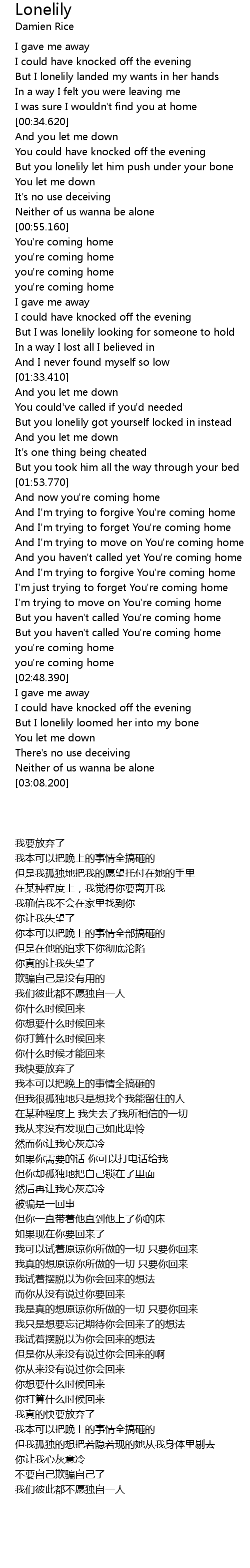 | [02:12.800] | And you haven' t called yet You' re coming home |