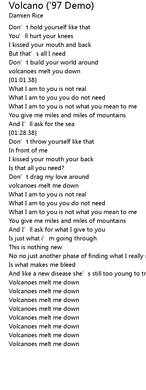 | [00:57.58] | volcanoes melt you down |