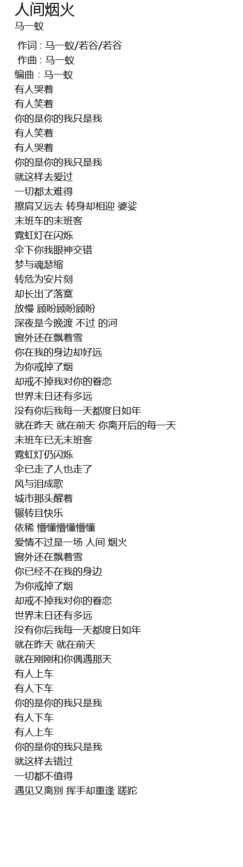 | [00:00.000] | 作词 : 马一蚁/若谷/若谷 |
