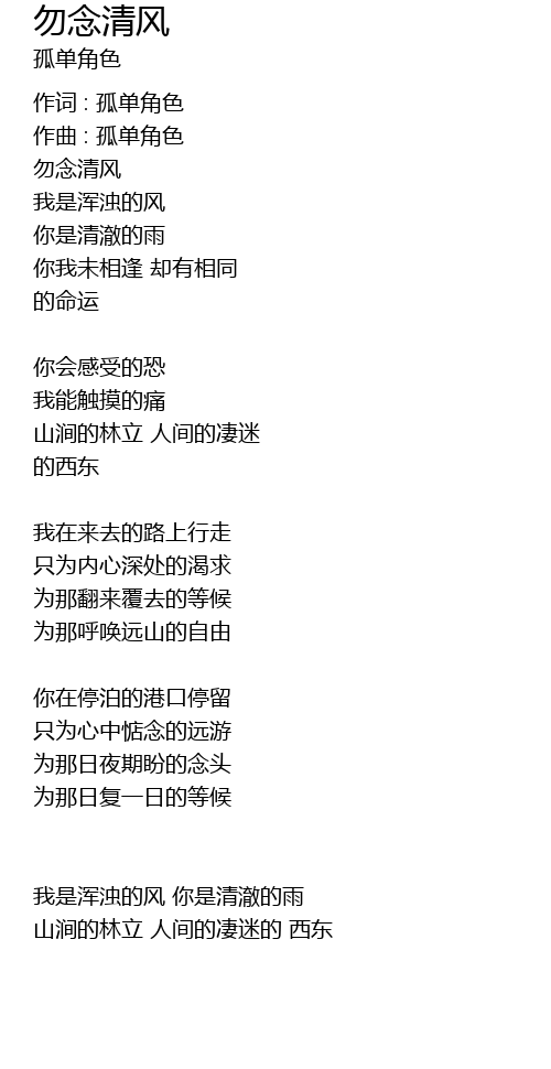 | wǒ shì hún zhuó de fēng nǐ shì qīng chè de yǔ | |