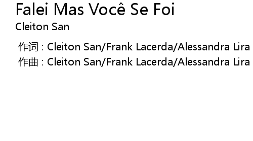 | [00:00.000] | 作词 : Cleiton San/Frank Lacerda/Alessandra Lira |