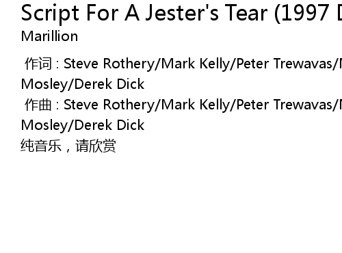 | [00:01.000] | 作曲 : Steve Rothery/Mark Kelly/Peter Trewavas/Michael Pointer/Ian Mosley/Derek Dick |
