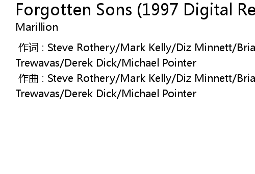 | [00:00.000] | 作词 : Steve Rothery/Mark Kelly/Diz Minnett/Brian Jelliman/Peter Trewavas/Derek Dick/Michael Pointer |
