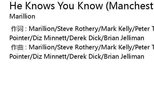 | [00:00.000] | zuo ci : Marillion Steve Rothery Mark Kelly Peter Trewavas Michael Pointer Diz Minnett Derek Dick Brian Jelliman |