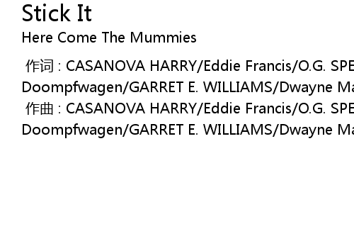 | [00:00.000] | 作词 : CASANOVA HARRY/Eddie Francis/O.G. SPEZZANO/Baron Von Doompfwagen/GARRET E. WILLIAMS/Dwayne Matthews |
