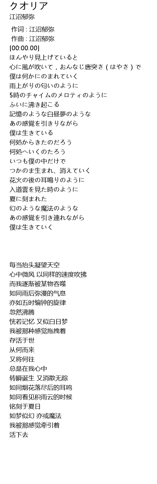 | [00:00.000] | 作词 : 江沼郁弥 |