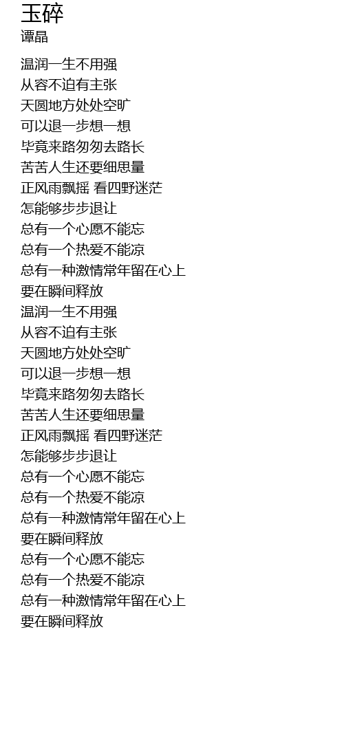 | [00:07.710] | 温润一生不用强 |