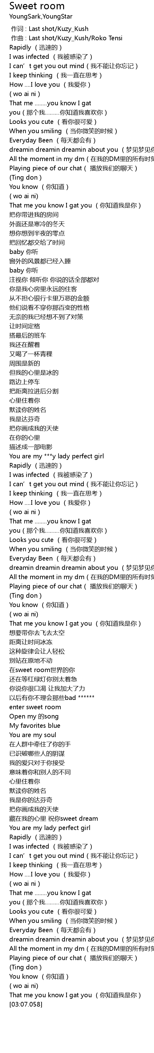 | [02:01.539] | zài sweet room shì jiè de nǐ |