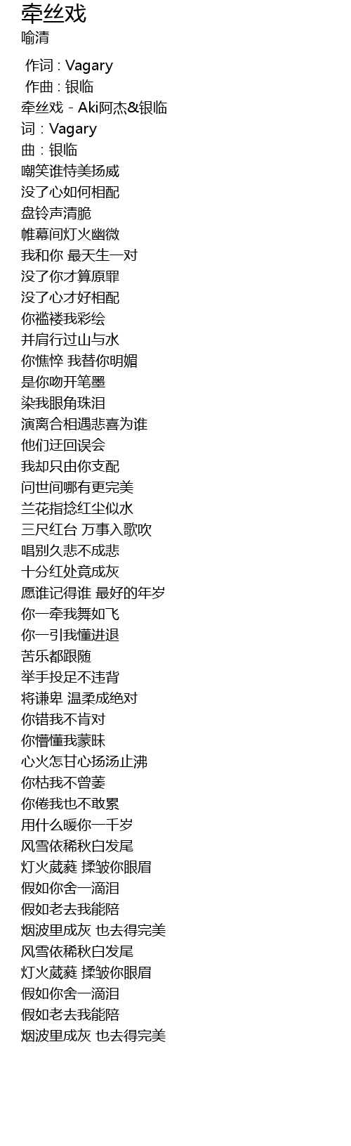 | [00:00.75] | 牵丝戏 - Aki阿杰&银临 |
