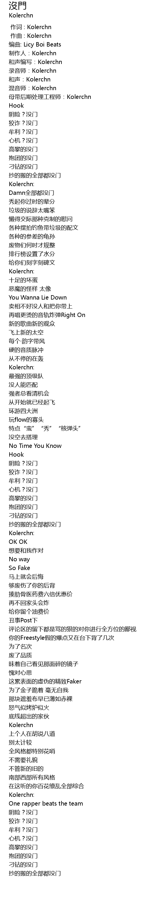 | [00:06.018] | 母带后期处理工程师:Kolerchn |