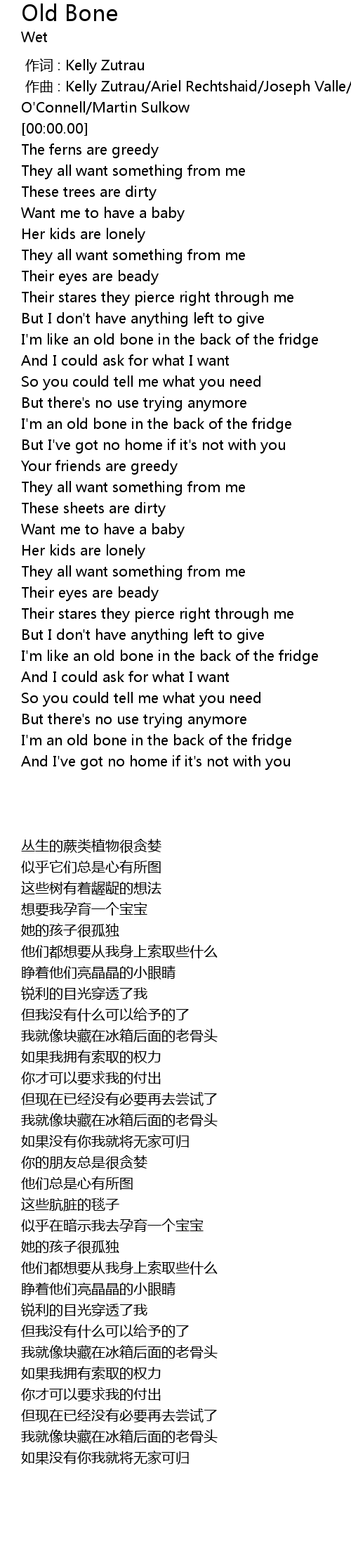 | [00:41.890] | I' m like an old bone in the back of the fridge |