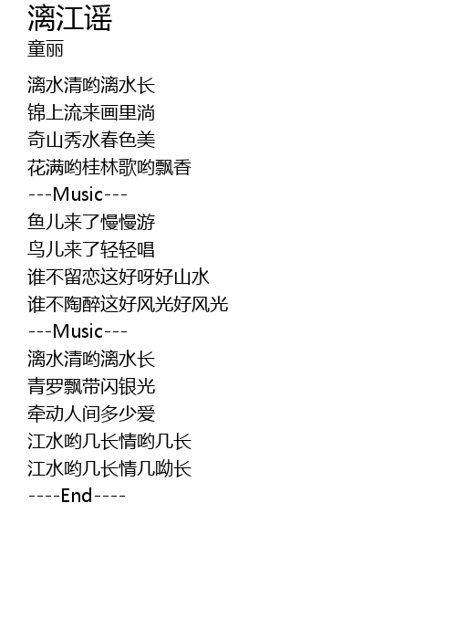 | [00:58.02] | lí shuǐ qīng yō lí shuǐ zhǎng |