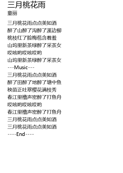 | [00:39.98] | 三月桃花雨点点美如酒 |