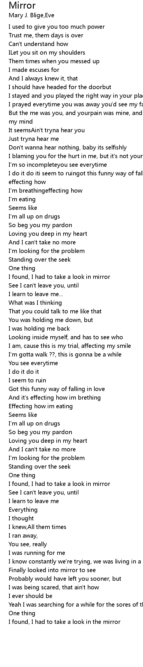 But the me was you, and yourpain was mine, and thesame situation playing over in my mind |