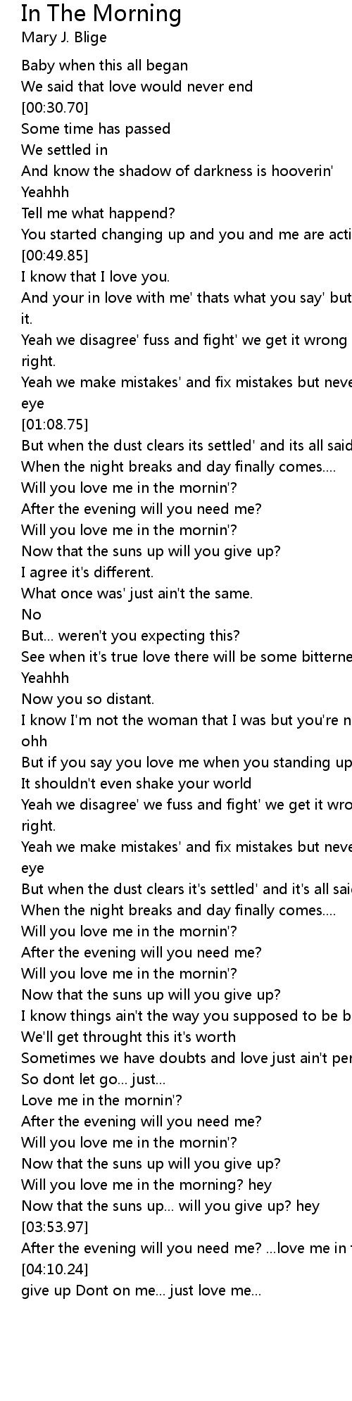 Will you love me in the mornin'? |