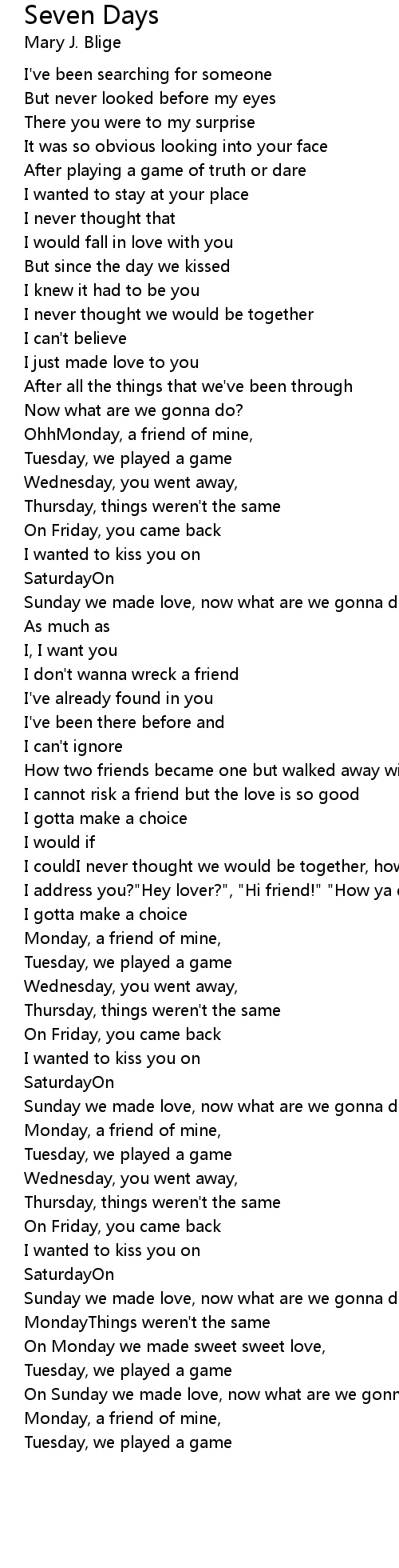 On Monday we made sweet sweet love, |
