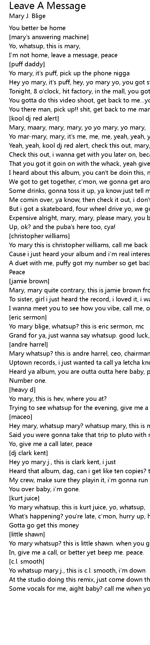 Yo mary, it's puff, pick up the phone nigga |