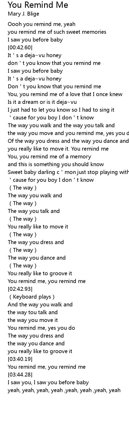 | [00:02.40] | Oooh you remind me, yeah |