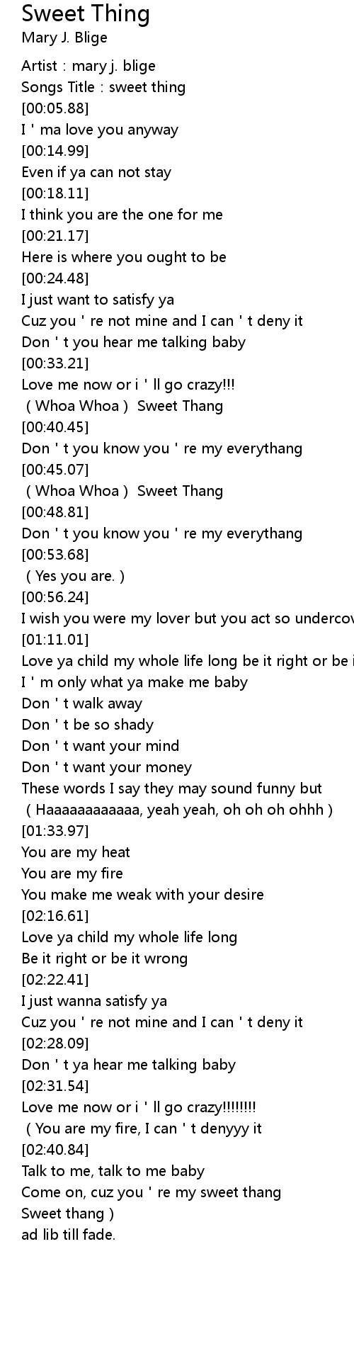 | [02:46.02] | Come on, cuz you're my sweet thang |