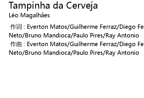 | [00:00.000] | 作曲 : Everton Matos/Guilherme Ferraz/Diego Ferrari/Sando Neto/Bruno Mandioca/Paulo Pires/Ray Antonio |