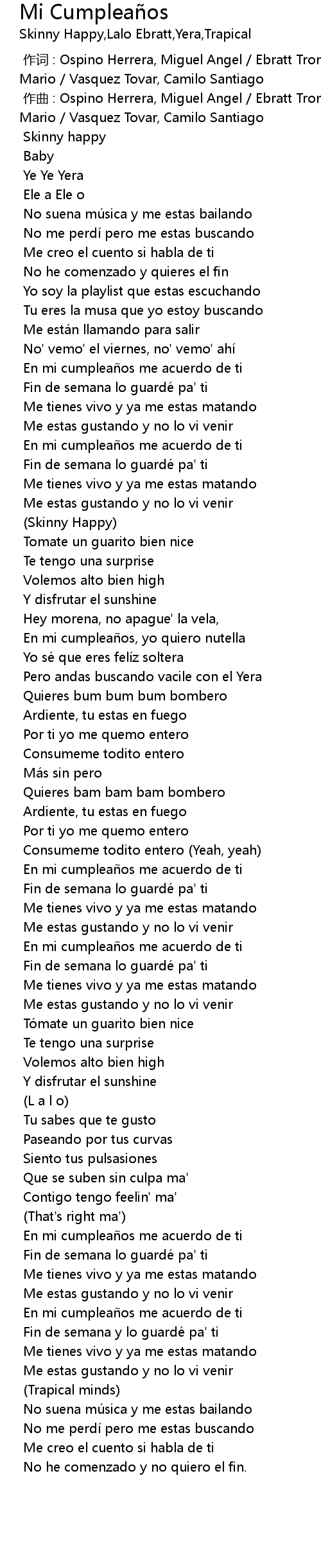 | [02:25.098] | En mi cumplea os me acuerdo de ti |