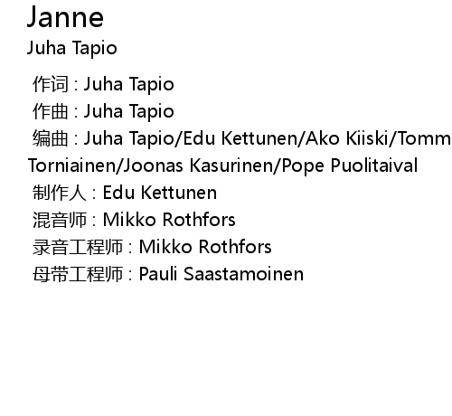 | [00:00.000] | zuò qǔ : Juha Tapio |