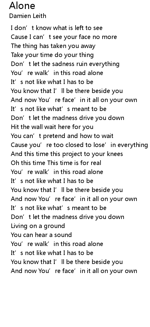 | You' re walk' in this road alone | |