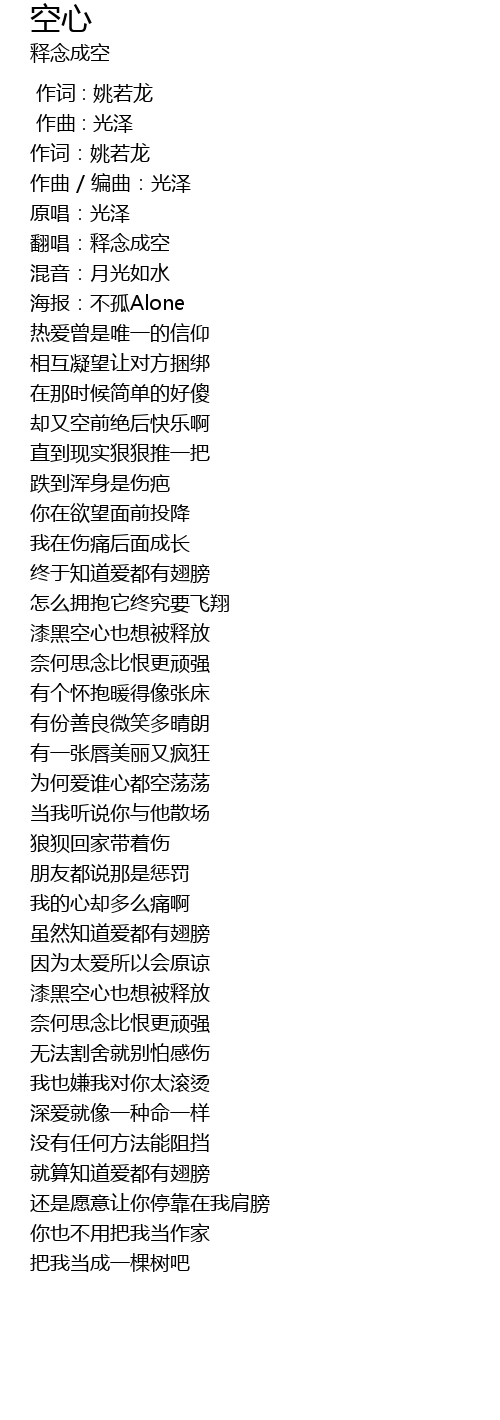 | [00:03.82] | 翻唱:释念成空 |