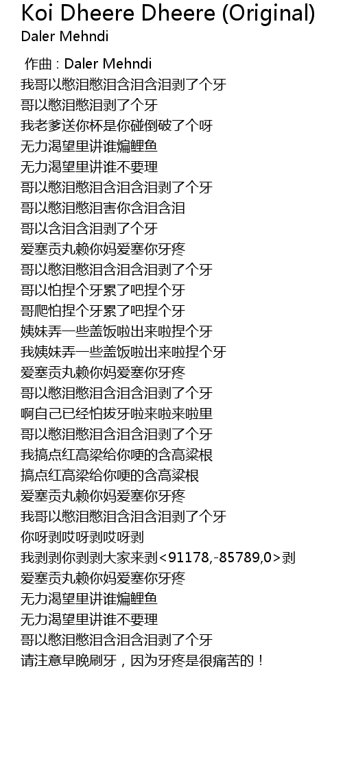 | [00:00.000] | 作曲 : Daler Mehndi |