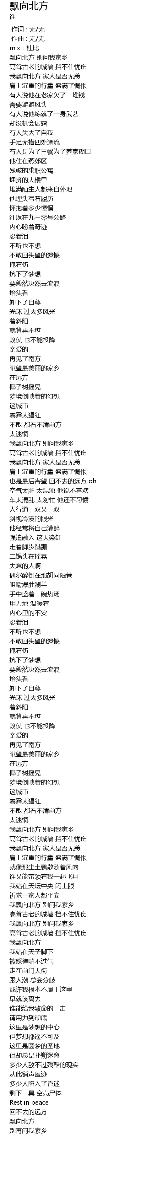 | [03:39.888] | 我飘向北方 |