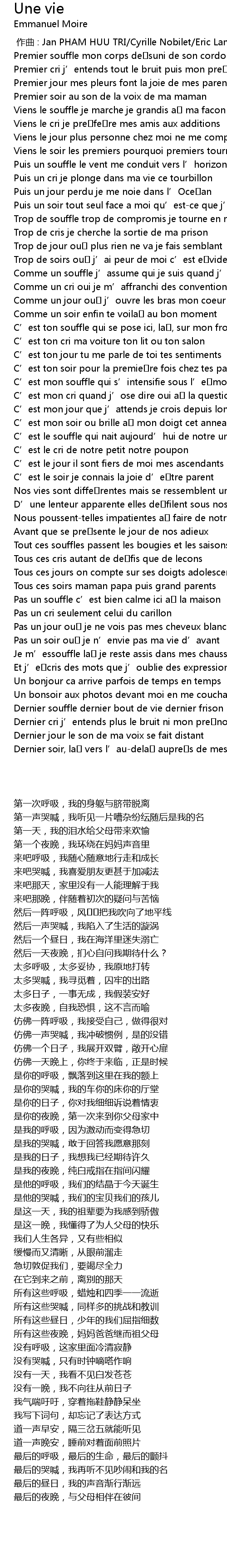 | [00:13.007] | Premier souffle mon corps de suni de son cordon |