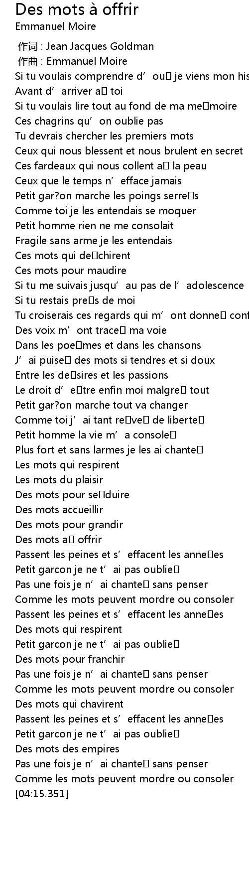 | [00:00.000] | 作词 : Jean Jacques Goldman |