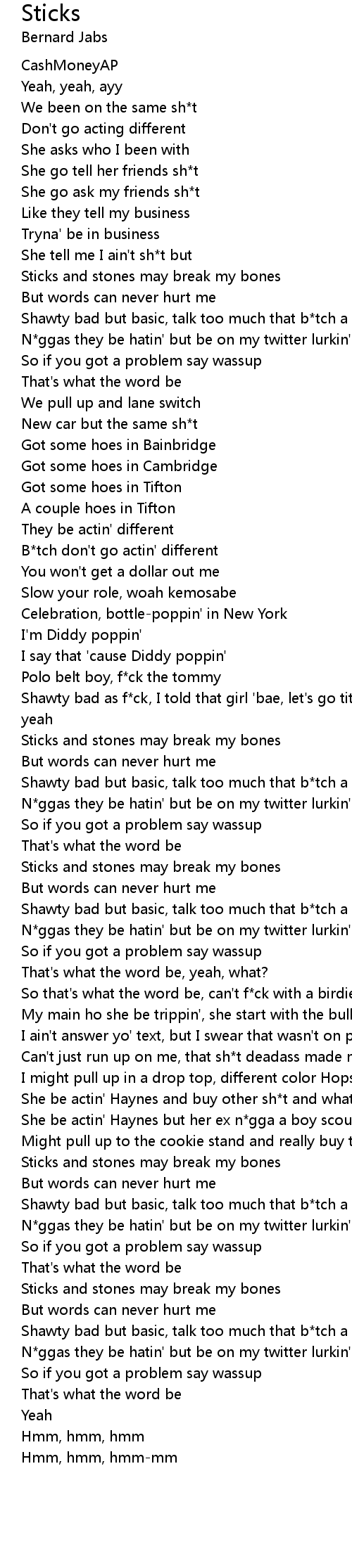 Shawty bad but basic, talk too much that b*tch a birdie |