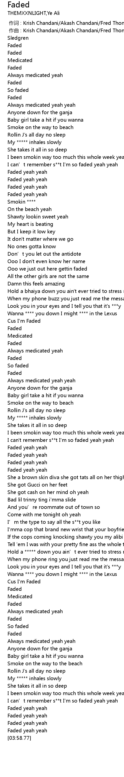 | [00:48.63] | I can’t remember s**t I'm so faded yeah yeah |
