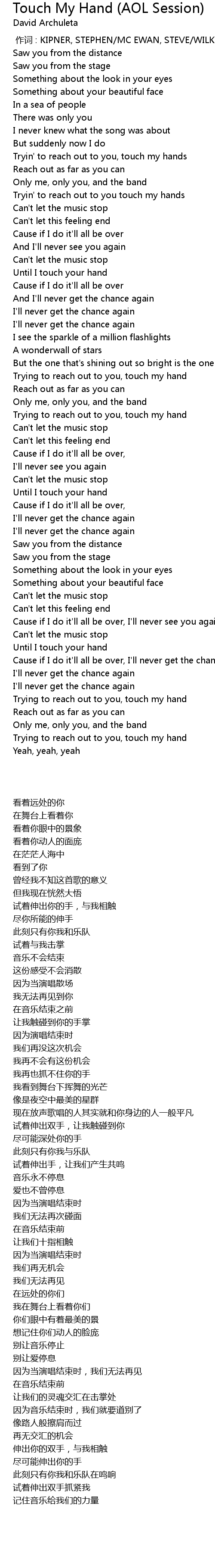 | Song | Touch My Hand (AOL Session) |