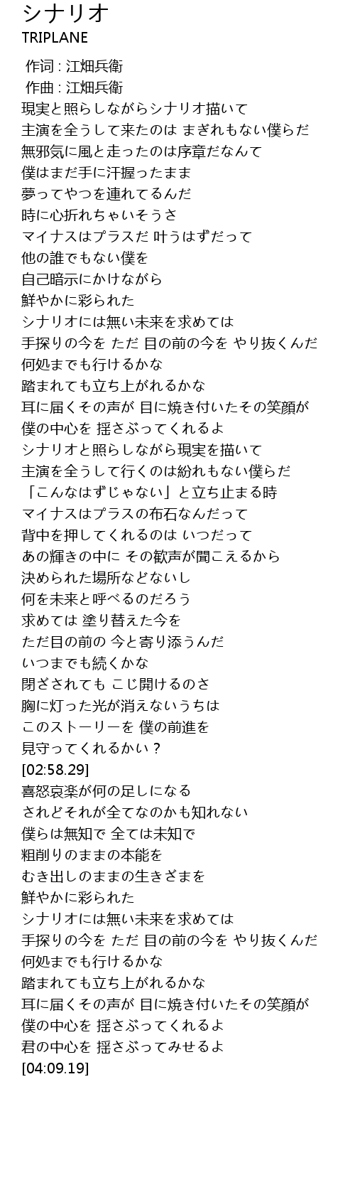 | [01:54.74] | シナリオと照らしながら現実を描いて |