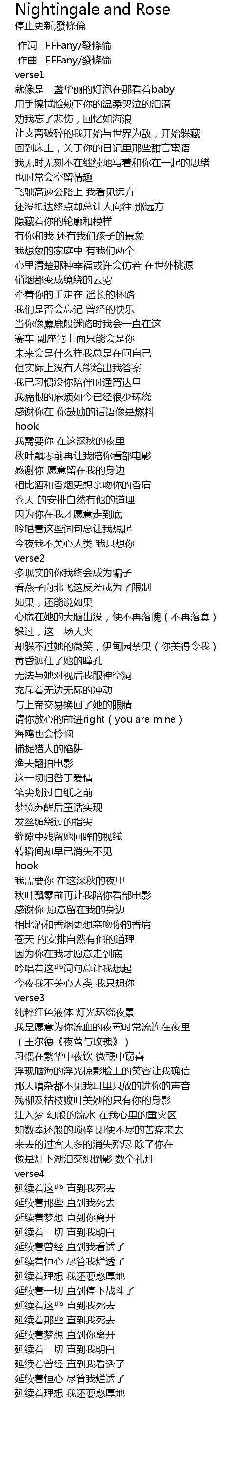 | [02:42.644] | 我是愿意为你流血的夜莺时常流连在夜里 |