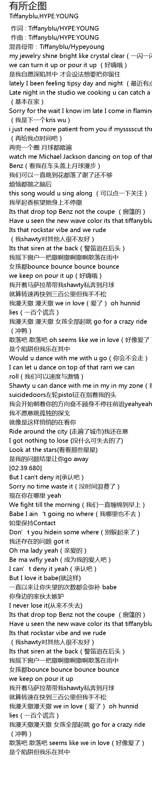 | [00:01.000] | zuo qu : Tiffanyblu HYPE: YOUNG |