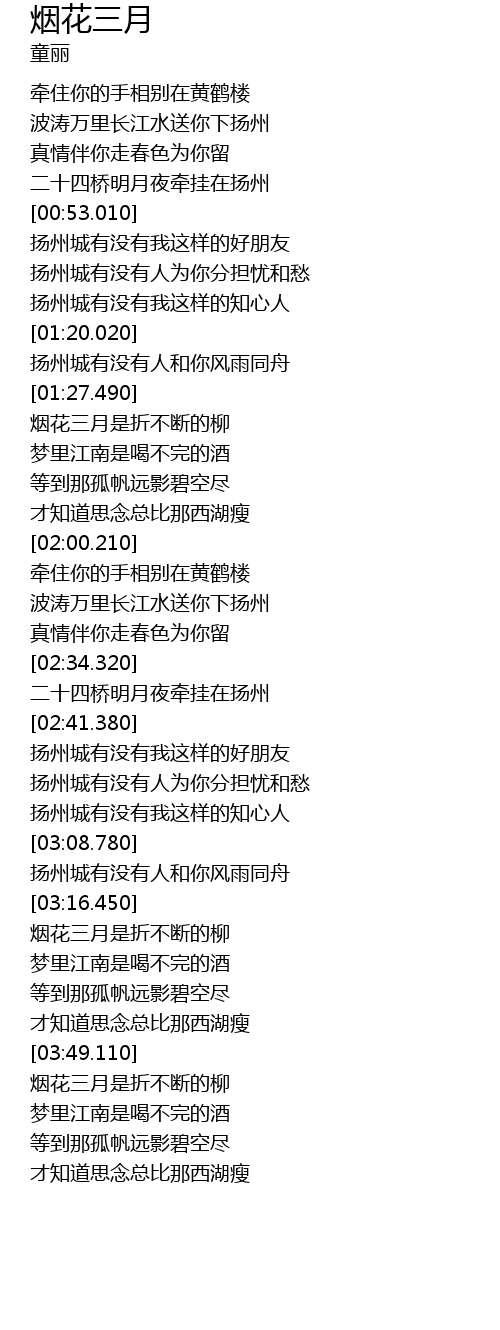 | [03:20.770] | 烟花三月是折不断的柳 |