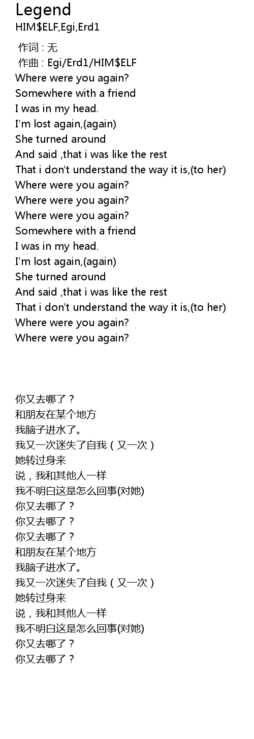 | [00:01.000] | zuo qu : Egi Erd1 HIM ELF |