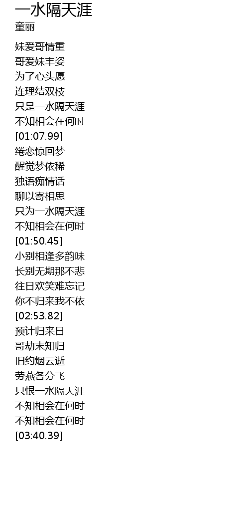 | [01:39.85] | zhǐ wèi yī shuǐ gé tiān yá |