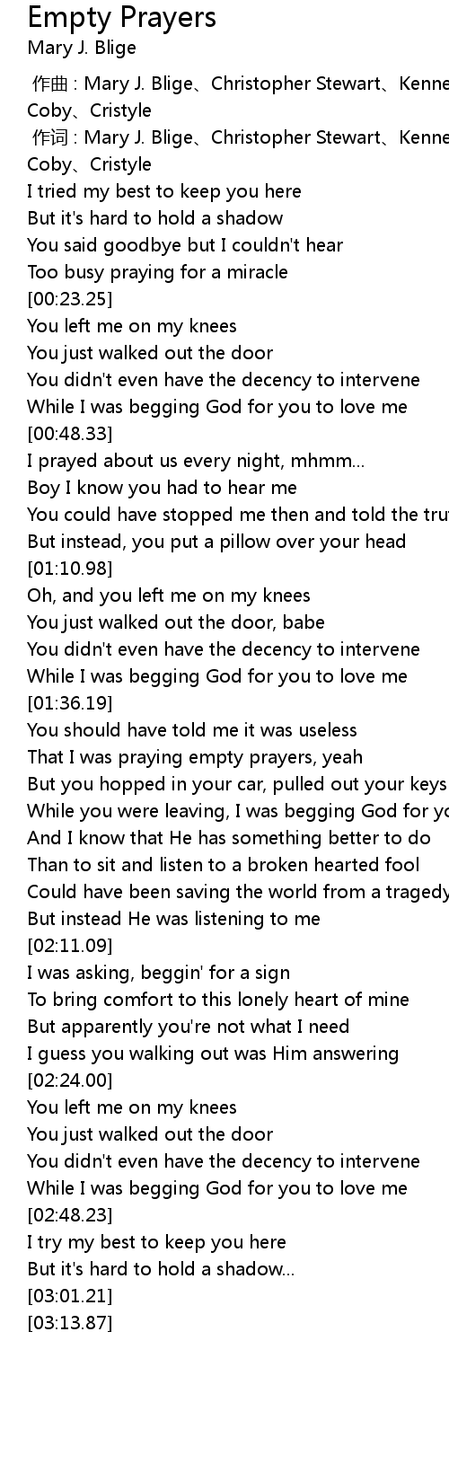 | [00:00.00] | zuo qu : Mary J. Blige Christopher Stewart Kenneth Coby Cristyle |